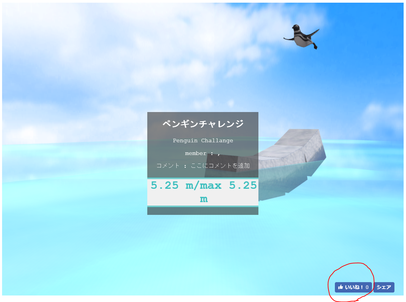 せっかくのペンギンですからスキージャンプの要領で飛ばしました。 ジャンプ台を滑れば滑るほど加速して最後に大ジャンプという流れで飛ばしたかったです。